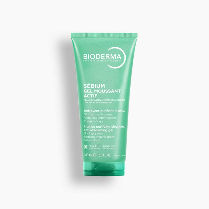 Sébium Gel moussant actif är speciellt framtagen för aknebenägen hud, så att den kan agera på orsakerna och konsekvenserna av dessa orenheter från rengöringssteget: